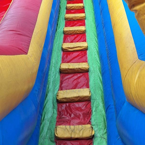 LET OP: mag niet geplaatst worden op kunstgrasveld. Attractie glijbaan die zeer geschikt is voor kinderentertainment. Ook leuk en geschikt voor zeskampen. Let op het is geen springkussen maar een spelkussen! Ook inzetbaar als zeskamp attractie/object. Uiteraard is deze glijbaan voorzien van een certificaat (keuringsbewijs). Voor extra veiligheid kunt u rubbertegels leggen op het einde van de glijbaan. Dit is verplicht als u de attractie op een harde ondergroen plaatst. Certificaat van goedkeuring 6309912.001