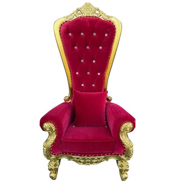 Onze troon / stoel is bekleed met luxe stof en heeft een stevig frame.